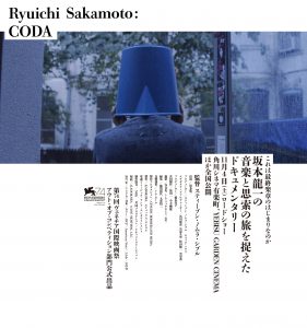 その教授を追ったドキュメンタリー映画が現在公開されています。スティーブン・ノムラ・シブル監督の『Ryuichi Sakamoto: CODA』。中央労働委員会の調査期日が少し早く終わったので,有楽町の映画館で最終上映を見てきました。CODAは音楽用語で“最終楽章”の意味。2014年に中咽頭がんの治療のため休養していた教授なので,ちょっとドキッとさせられるタイトルです。東日本大震災で津波を被り,音がくるってしまったピアノを愛おしそうに弾く教授を写した予告編を見ていたので,震災以降の彼の姿を追った映画なのかと思っていたのですが,YMO時代のちょっと尖がったインタビューやライブ映像,映画音楽制作の裏話,環境問題や原発について積極的な発言を続ける理由など40年間の活動全般を追った内容になっていて興味深く見ることができました。